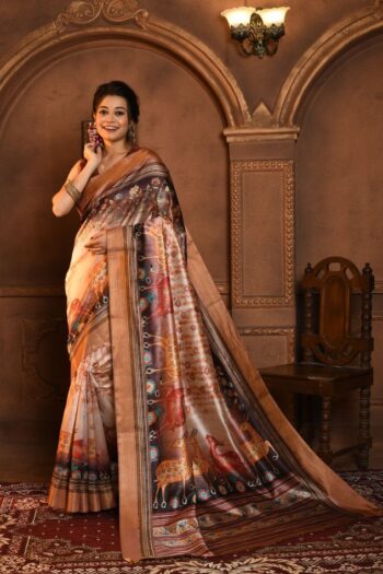 Classic Kalamkari Tussar Silk Saree with Soft Zari Pallu