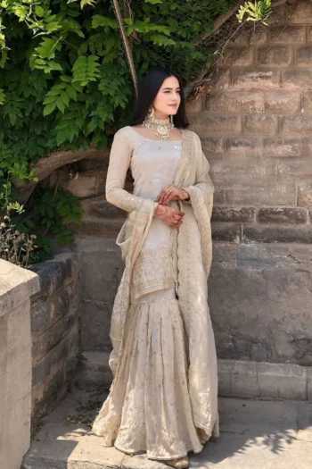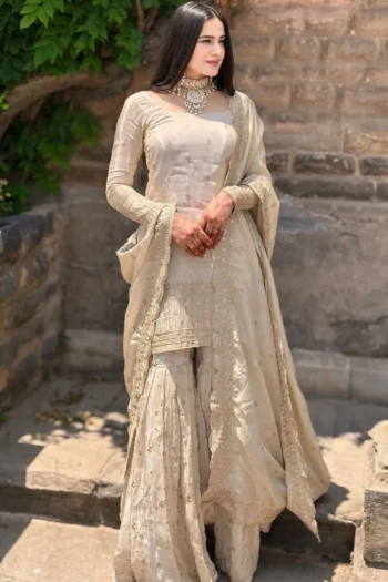 Chinon Silk Sharara Set with Heavy Embroidery & Sequins Work
