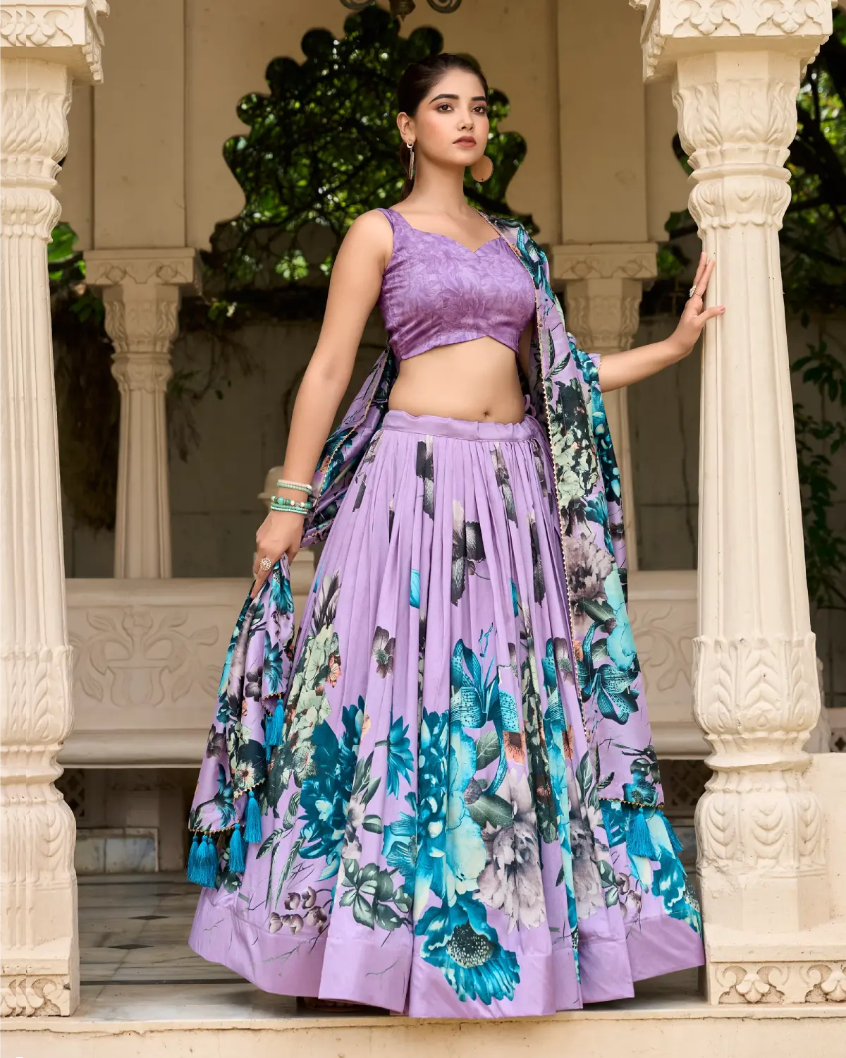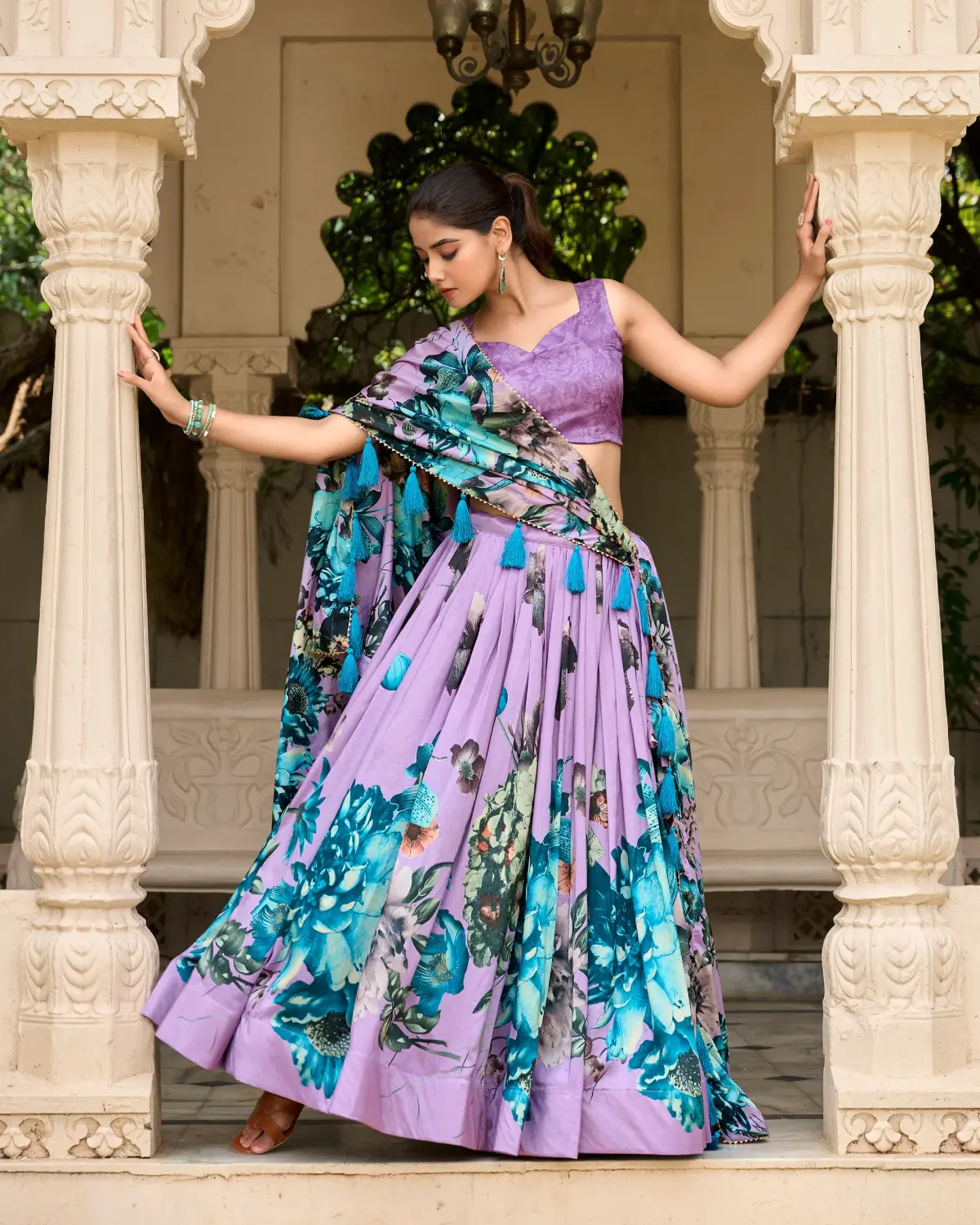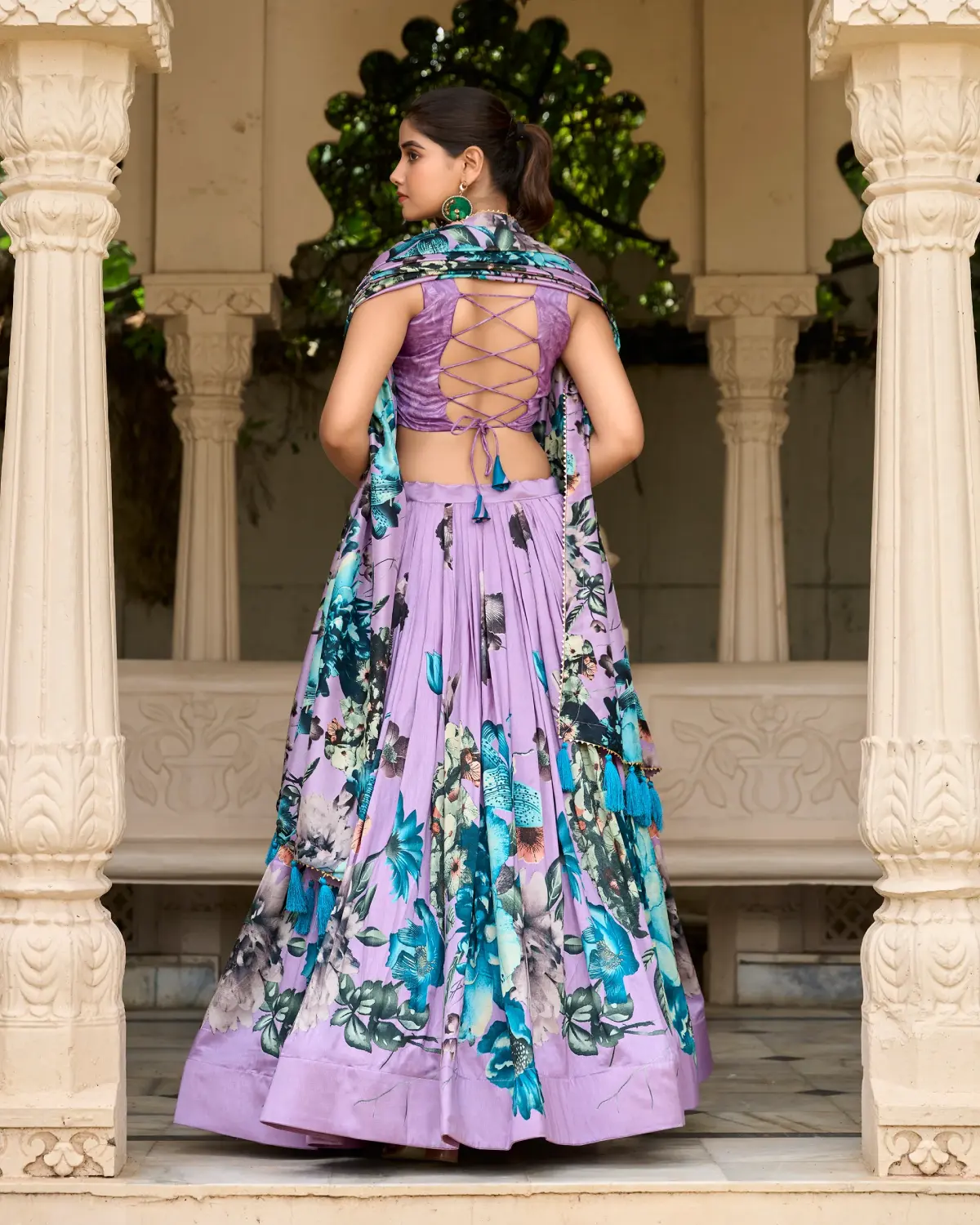 Blooming Grace: Tasar Silk Floral Print Lehenga Choli Set