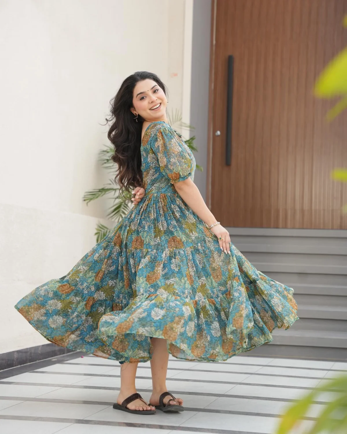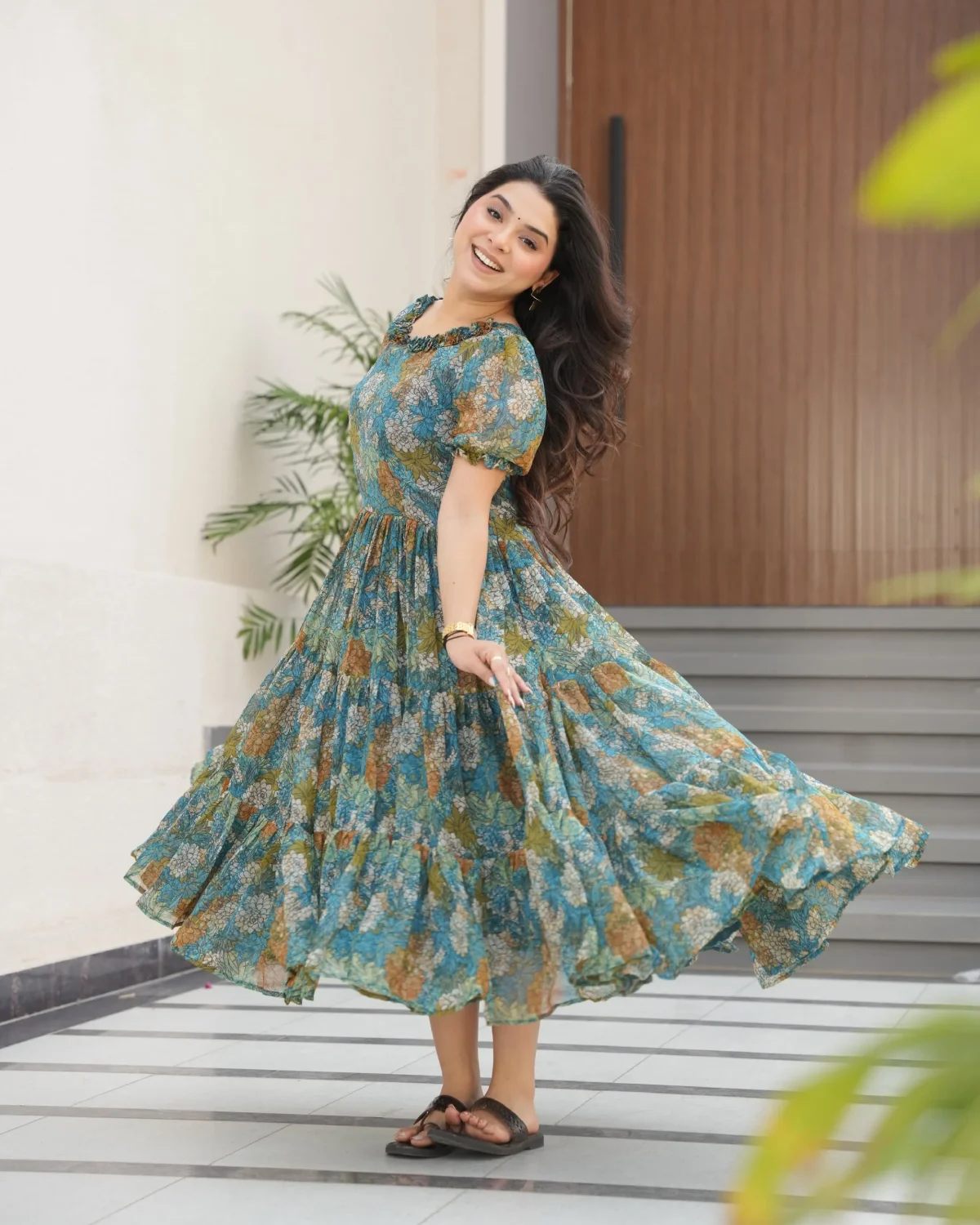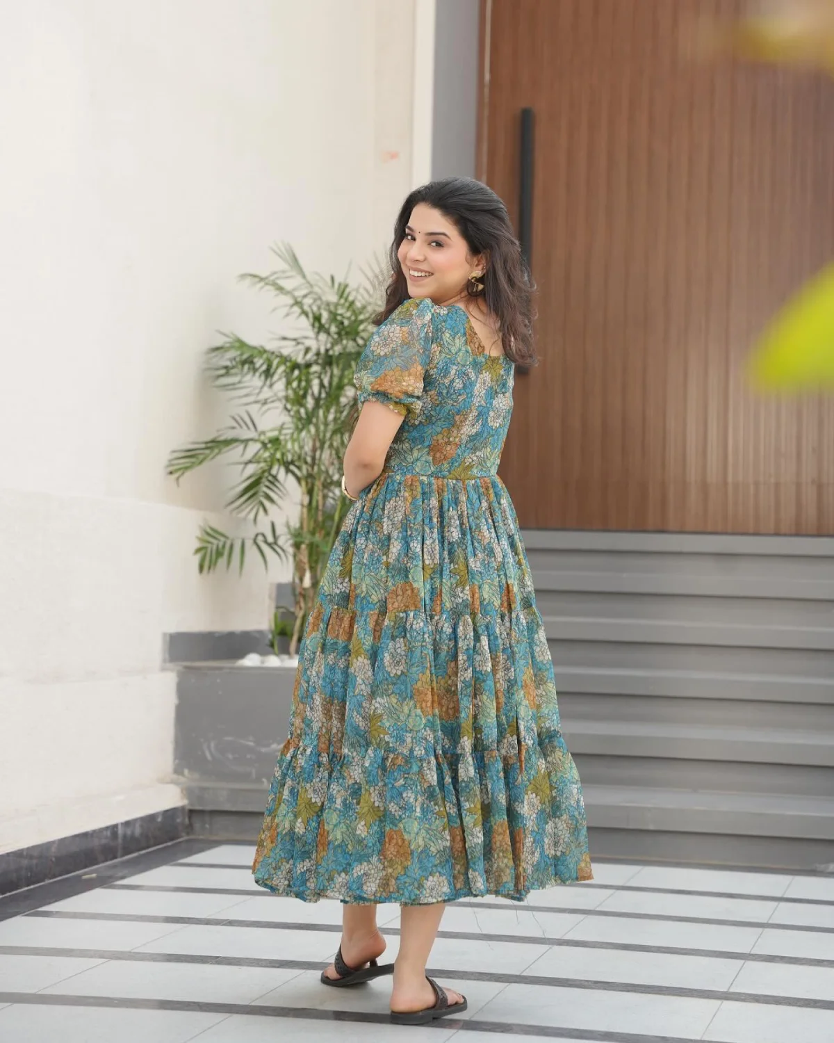 Premium Green Floral Georgette Party Wear & Casual Gown
